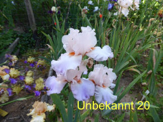In dieser Rubrik finden Sie schöne Schwertlilien / Iris deren Namen unklar ist. Manchmal stimmt der Name, unter dem die Pflanze gekauft wurde, nicht. Manchmal läßt sich auch die Korrektheit des Namens der Pflanze nicht überprüfen, da die Pflanze im WeltWeitWeb nicht existiert. Jedenfalls kennen wir den korrekten Namen der Sorte nicht - daher nennen wir die Sorte " noch Unbekannt". Gerne dürfen Sie uns bei der korrekten Namenfindung helfen. |